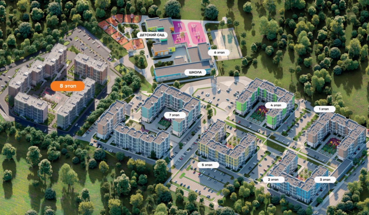 Крупнейший семейный микрорайон включает в себя 8 больших домов, а также торговый центр. Семь уже сданных и заселенных домов и восьмой в продаже!
