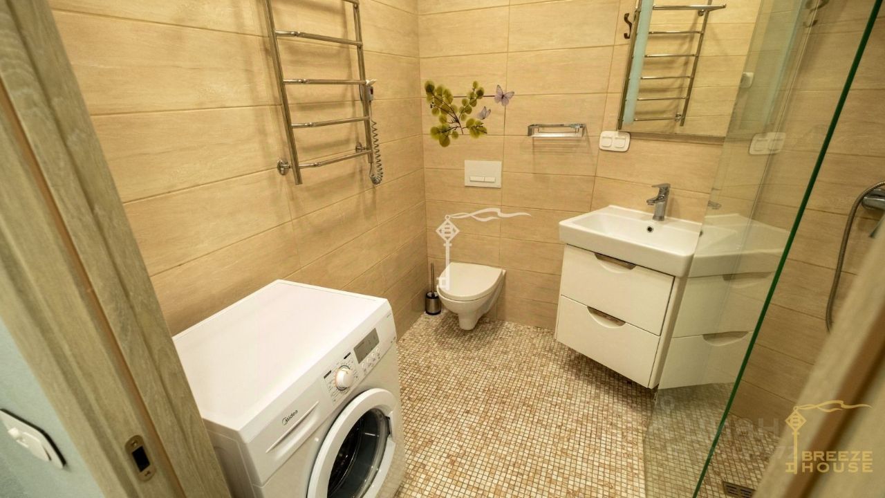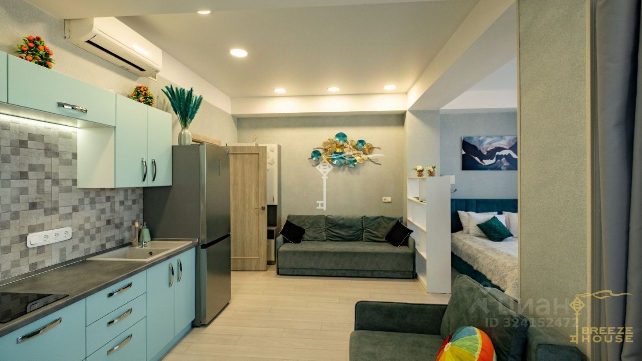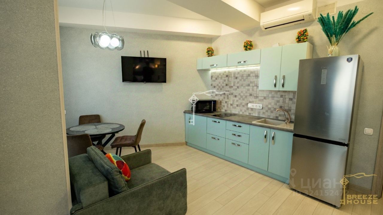 -Кухня оборудована встроенной бытовой техникой и продуманной рабочей зоной. -Установлены два телевизора и два кондиционера— в кухне-гостиной и в спальне. -Установлена система тёплый пол.