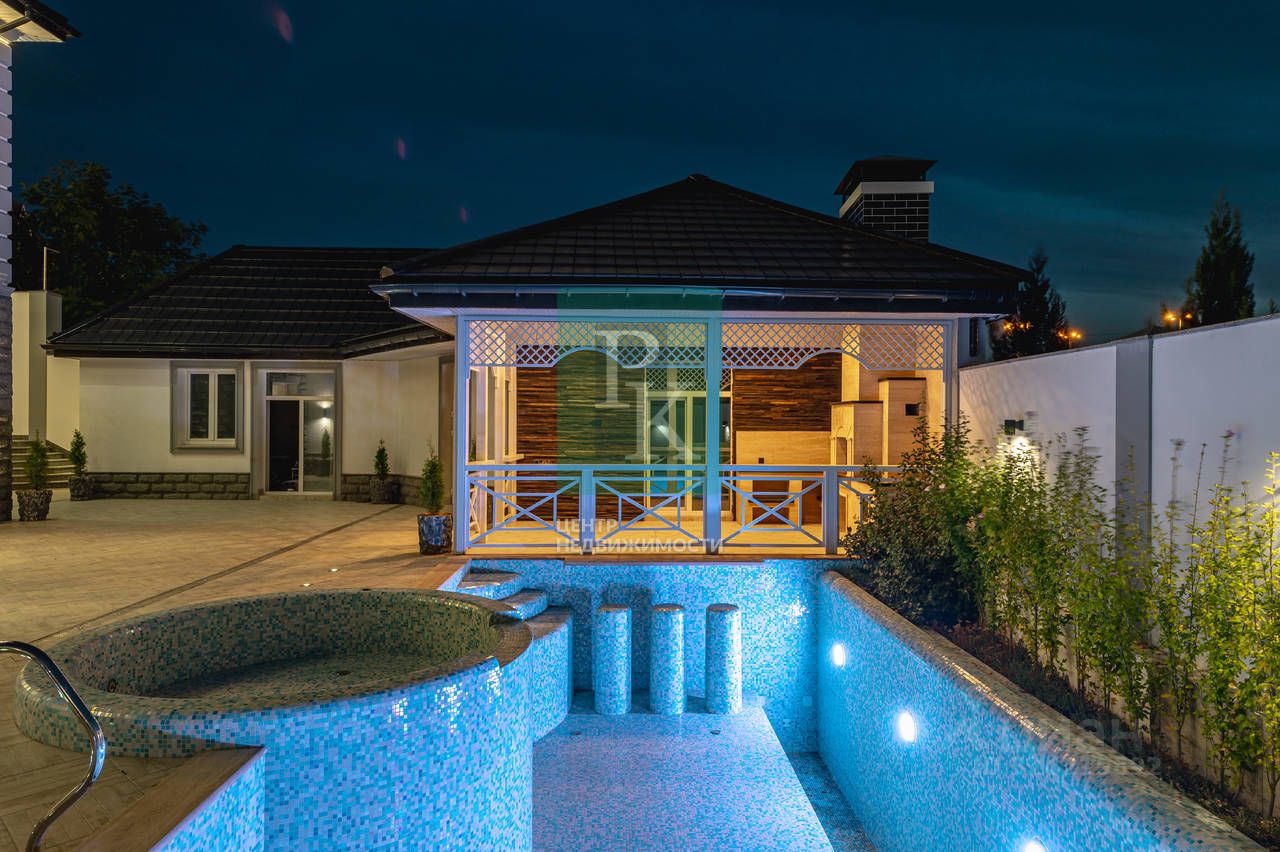 -Участок 7,5 соток, статус участка: ИЖС -Территория огорожена забором -Подъезд асфальтированный Стильный, респектабельный и потрясающе комфортный, этот дом воплотит в себе Ваши мысли, желания и чувства. Он будет надежным оплотом, подарит уют и независимость, позволит расслабиться от городской суеты и окунуться в атмосферу роскоши, тишины и чистого воздуха. Современный стильный дизайн с элементами неоклассики. Немецкая чёрная черепица экстра-класса ''Braas''. Индивидуальность здания подчёркивает уникальные архитектурные решения: гранитная скала в комбинации с декоративной штукатуркой, сложная геометрия кровли и подсветка фасада. Все используемые материалы высочайшего качества, экологически чистые. Статусный интерьер: стильные световые решения, подсветки и светильники. Светотехника производства Австрия. Стеклянный камин MCZ Forma T50 (Италия). Отделка натуральными материалами оникс, мрамор, гранит, травертин (имеются сертификаты). Отделка санузлов итальянской и испанской плиткой. Высококачественные Двери Меранти с итальянской фурнитурой Colombo. Передовые инженерные системы: Система канального кондиционирования Mitsubishi Electric. Авторская котельная, оборудованная техникой Vaillant (Германия). Система водоподготовки. Система автополива. Бойлер рециркуляции 300л. Немецкие 5 камерные окна ''SCHUCO'' с энергосберегающими стеклопакетами английской фирмы ''Pilkington''. Мансардные окна ''Velux'' с датчиками дождя и пультом дистанционного управления. Шумоизоляция потолка и стен высококачественной мембраной Tecsound FT 75. Тёплый пол на всех этажах. Роскошная зона отдыха. Бассейн с переливом 45 куб.м. Оборудование Европейское: водоподготовка, фильтры, насосы, контроль уровня, дозация, гейзер, водопад, встречное течение. Гостевой комплекс, включающий в себя гостевой номер со своим с/у и кухней, а также СПА-комплекс: русская баня на дровах и турецкий хамам, отделанный белым мрамором. Парогенератор ''Steamtec'' 24квт (Германия). Зона барбекю, выполненная из травертина и чёрного мрамора. Отдельные элементы беседки представлены натуральным мореным дубом (уникальный материал, на создание которого природой затрачены тысячи лет). Безопасность: видеонаблюдение: 10 видео камер. Датчики охраны всех помещений дома. Система охраны периметра участка Optex. Автоматические ворота с авто приводами Doorhan. Уникальный растительный ансамбль: по периметру участка высажены итальянские кипарисы Leyland. Позвоните нам, чтобы назначить просмотр! Инфраструктура: Дом находится в развивающемся районе города. Отличная развязка дорог: за считанные минуты Вы окажетесь в самом сердце города с его спортивно-развлекательными центрами, образовательными учреждениями, детскими садами, супермаркетами, салонами красоты и клубами по интересам. Подходит для наличного расчета, под ипотеку. Документы РФ. Проверены юристами и готовы к сделке. Профессиональное сопровождение до получения права собственности. Добавьте предложение в закладки, чтобы не потерять!