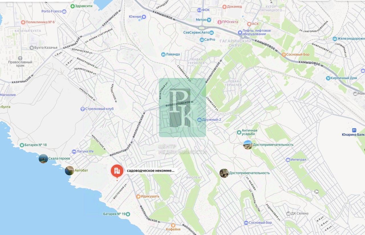 -Электричество - заведено 5 кВт (есть возможность увеличения до 15 кВт) -Вода - кооперативная, есть возможность бурения скважины Участок угловой, что дает возможность с удобством организовать заезд с двух сторон. Соотношение сторон 26х18м, фасадная часть широкая. На участке расположен небольшой садовый дом 30м2, который подходит для первичного проживания или под хранение инвентаря при строительстве своего дома. Всего в 300м от него открываются завораживающие виды на море и закаты. Инфраструктура: Участок находится в активно развивающемся районе города, в 300 м от Фиолентовского шоссе, в 600 м от остановки общественного транспорта, кафе, магазинов и т.д. Помимо этого, поблизости есть детские сады, школы, ТЦ Метро, АЗС и прочее. Подходит для наличного расчета и под ипотеку. Документы проверены юристами и готовы к сделке. Профессиональное сопровождение до получения права собственности.