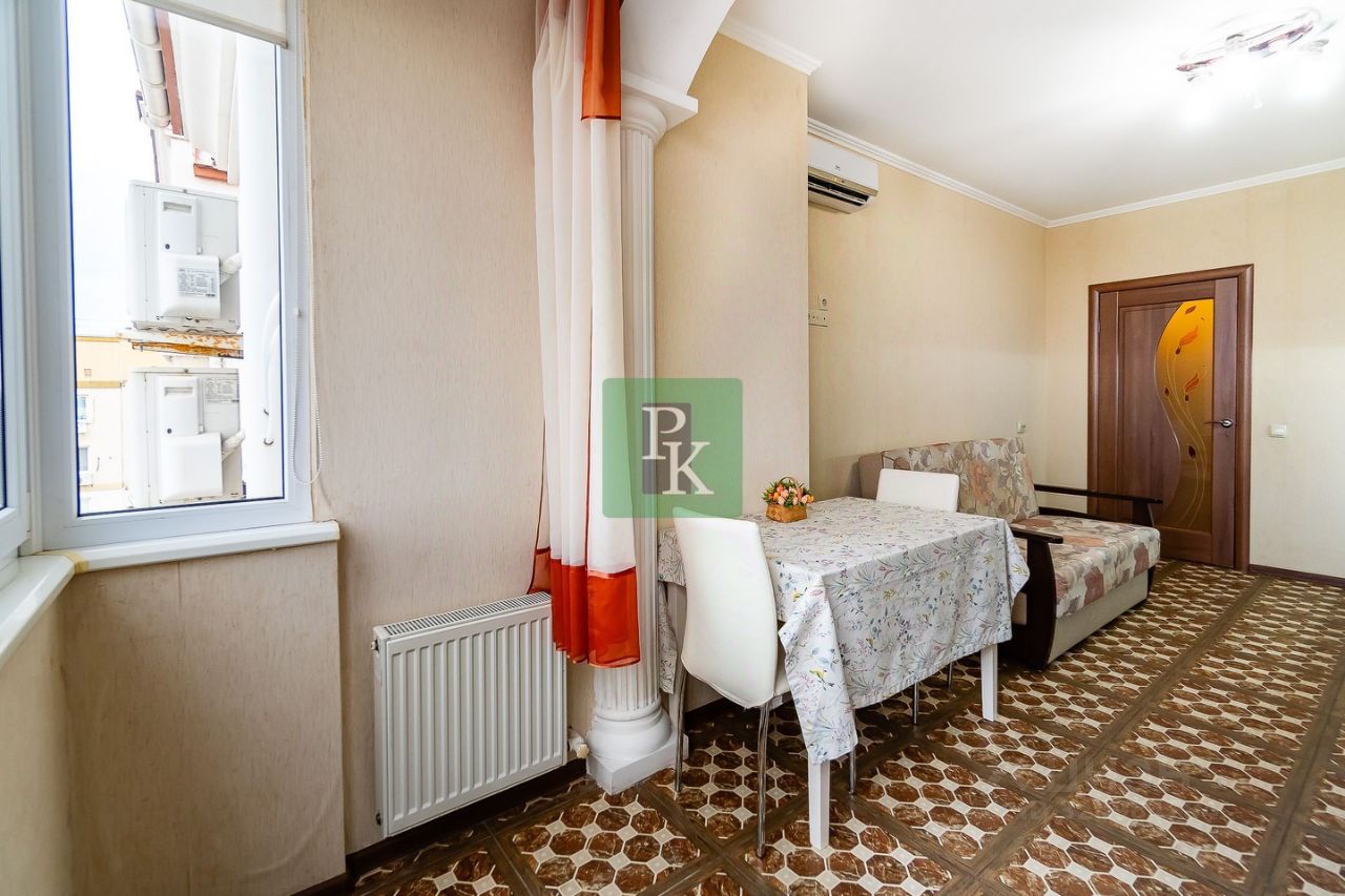 Продается однокомнатная квартира 42,5 м2 с кухней 13,3 м2 на девятом этаже девятиэтажного дома. Расположена в г. Севастополь, Гагаринский район, Античный проспект 20 Б Квартира в одном из самых лучших районов города. Подходит для проживания или как высоколиквидная инвестиция.