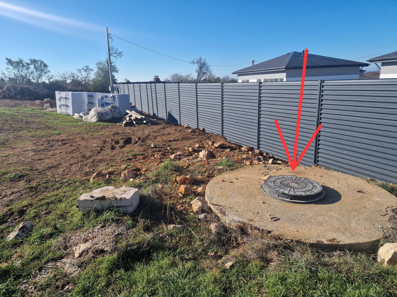 Под землёй установлена пластиковая ёмкость на 6 кубов.