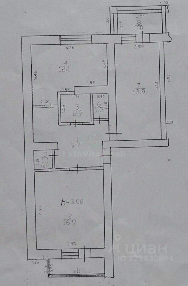 Cанузeл pаздельный 2,7 м2 +1,3 м2. Балкoн и лоджия застекленные.