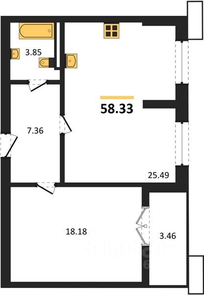 Общая площадь58,33 м2
