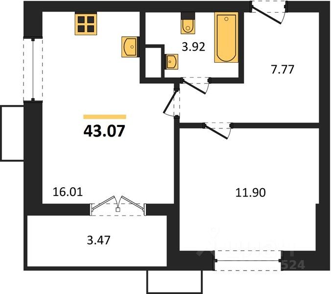 Общая площадь43,07 м2