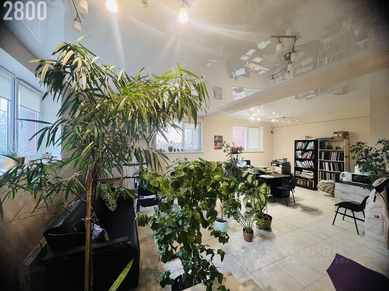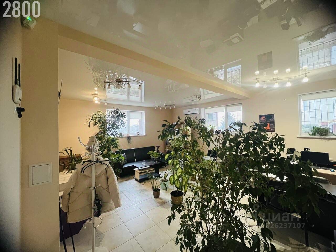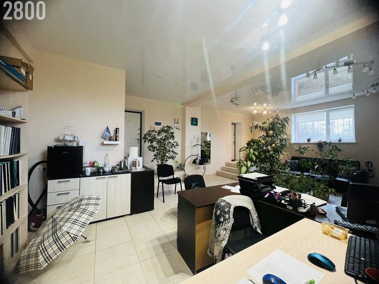 Расположен в цокольном этаже, имеет 3 больших окна очень светлое