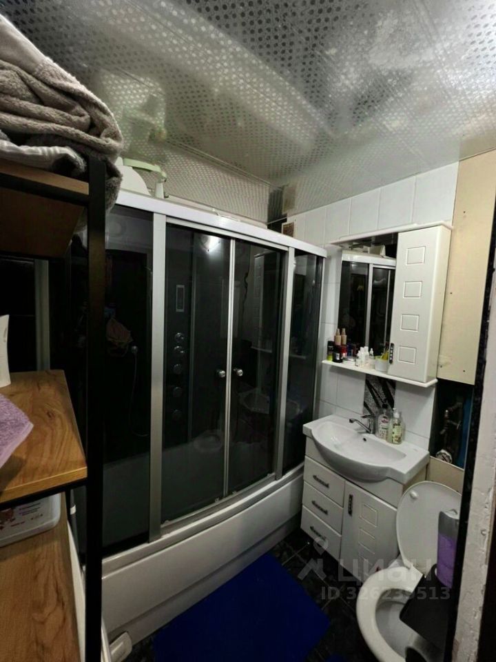 Санузел в плитке — стиль, гигиена и долговечность. Душевая кабина в отличном состоянии, есть всё: туалет, раковина — готово к использованию.