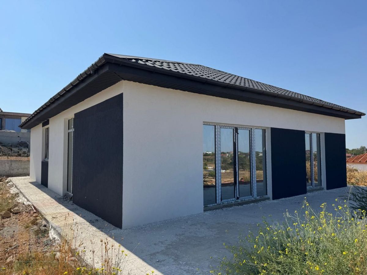 Планировка дома есть на фото: 3 комнаты, просторная кухня-гостинная, сан.узел, тех.помещение. Панорамное остекленение, выход на террасу.