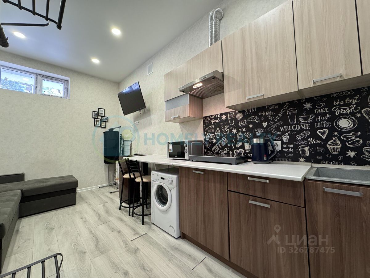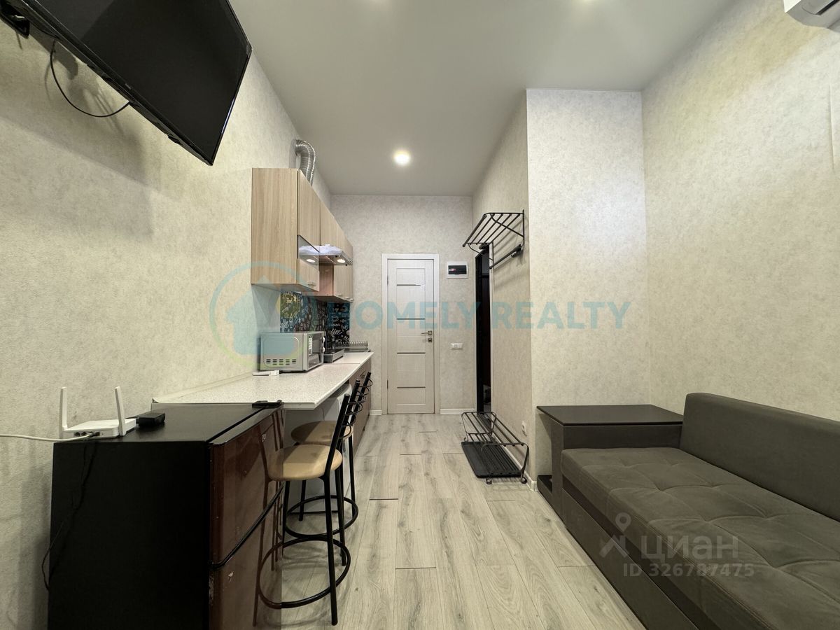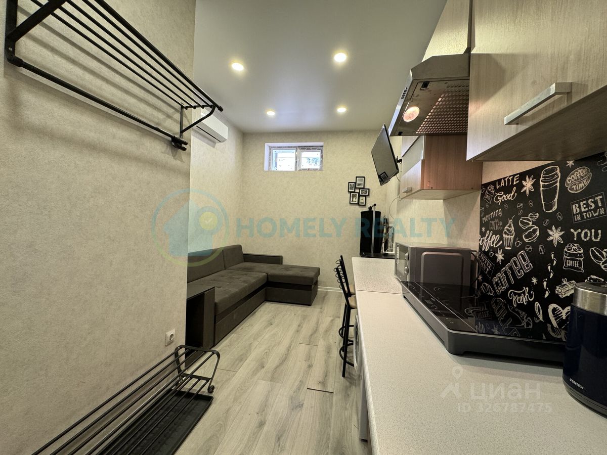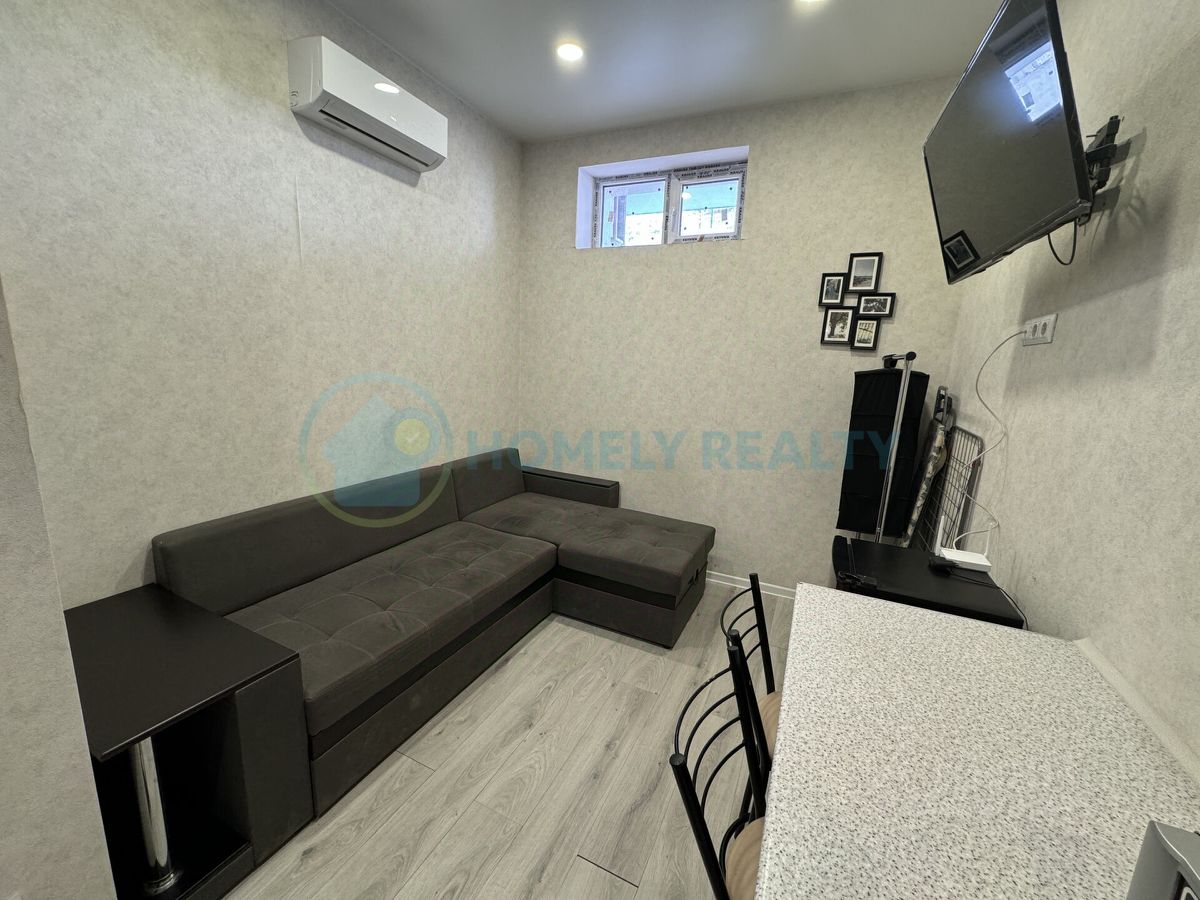 — Общая площадь 17 кв.м. — Апартаменты находятся в цокольном этаже жилого дома, коридорная система. — Санузел совмещенный, есть душевая кабина. — Отопление- кондиционер. — Горячая вода от бойлера. — Мебель: большой раскладывающийся угловой диван, кухонная мебель. — Техника: телевизор, кондиционер, электрический чайник, электро-плита, микроволновка, стиральная машина, холодильникю — Имеется минимальный набор посуды, приборов.