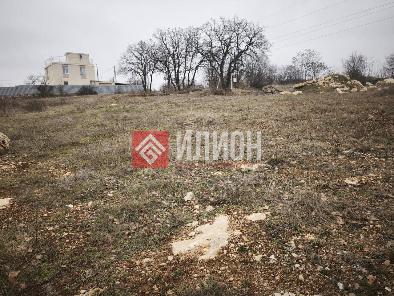 С участка видно немного море. Рядом видны Крымские сосны, хвойный лес для прогулок.