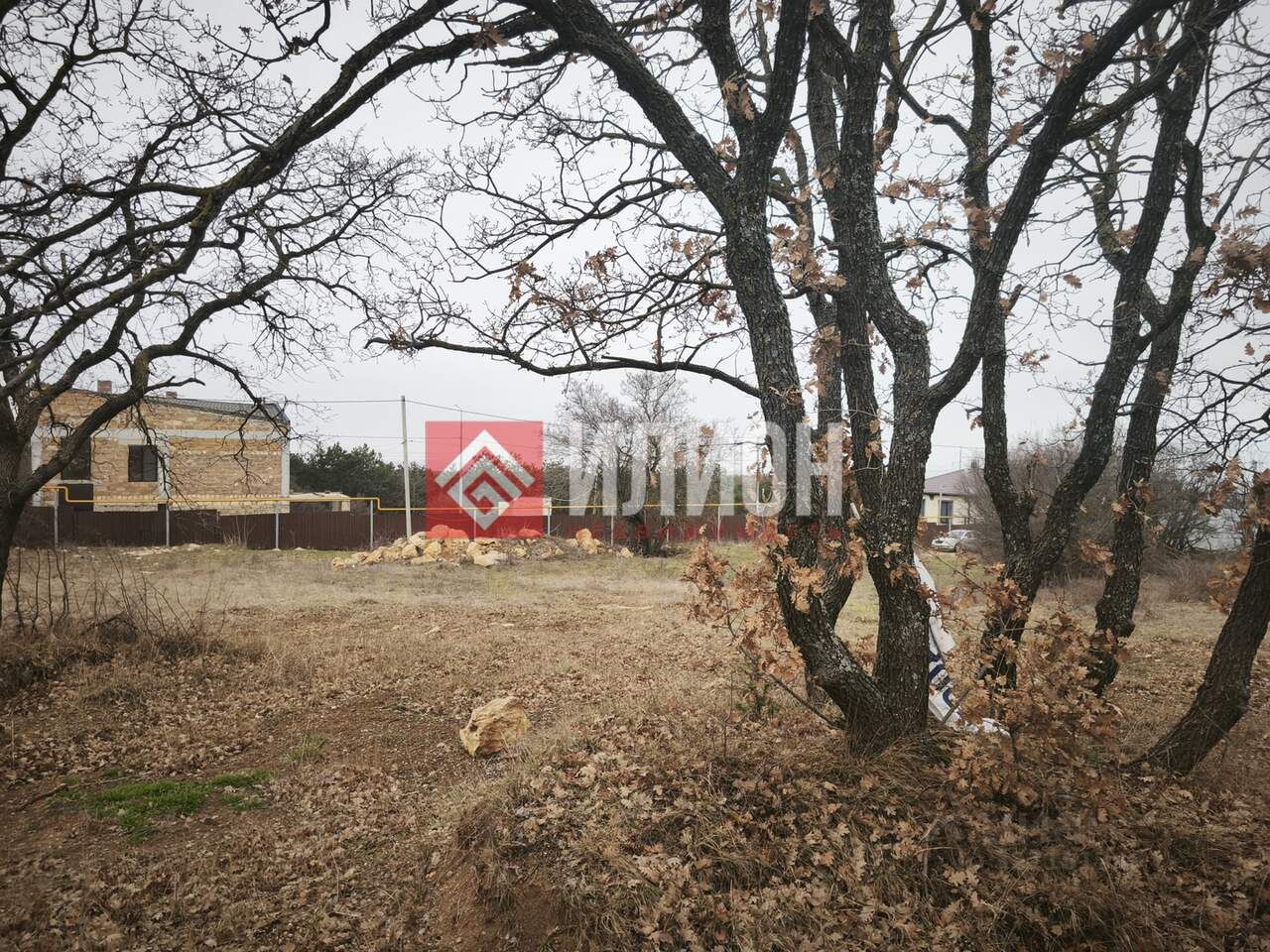 С участка видно немного море. Рядом видны Крымские сосны, хвойный лес для прогулок.