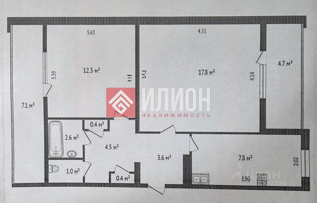 Лоджии со стеклопакетами из каждой комнаты, кухня-7.8 кв.м, просторный холл 4 кв.м , санузел раздельный.