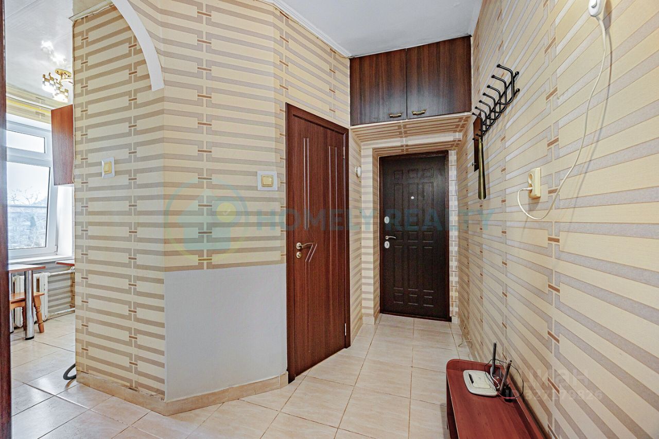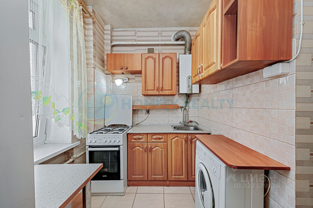 — Общая площадь: 38,4 м², жилая площадь: 25 м², площадь кухни: 6 м². — Высота потолка: 2,50 м. — Санузел совмещенный. — Перепланировок в квартире не производилось. — Квартира имеет стандартную планировку квартиры типа брежневка, две смежные комнаты, площадью 14,9 и 10,1 м². — Окна выходят в тихий двор с парковкой. — Отопление центральное. Горячая вода от газовой колонки. — При продаже в квартире остаётся кухонный гарнитур.