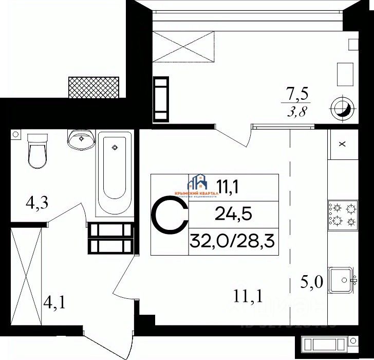 Общая площадь32 м2